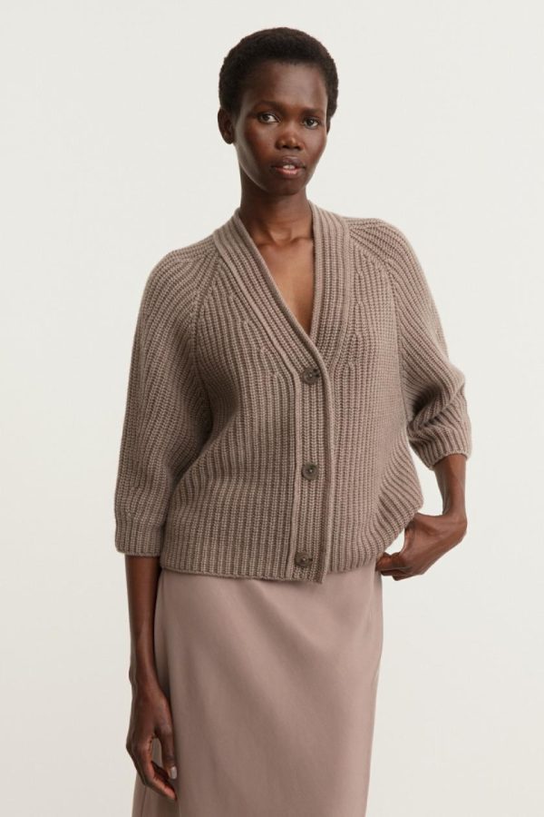 Iris Von Arnim FALLOU BUTTON Stonewashed Cashmere Cardigan Taupe Sw | Damen Strickjacken